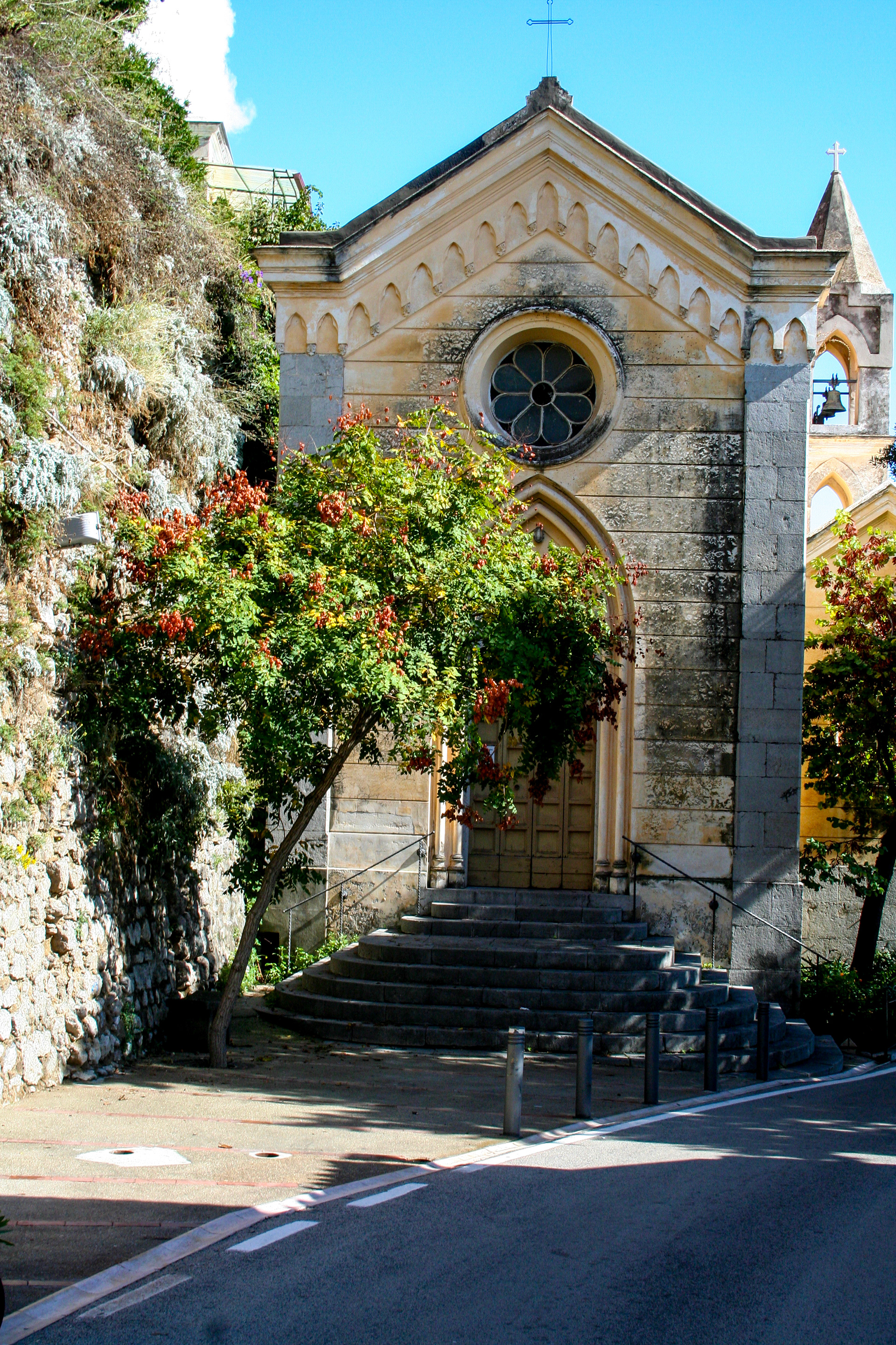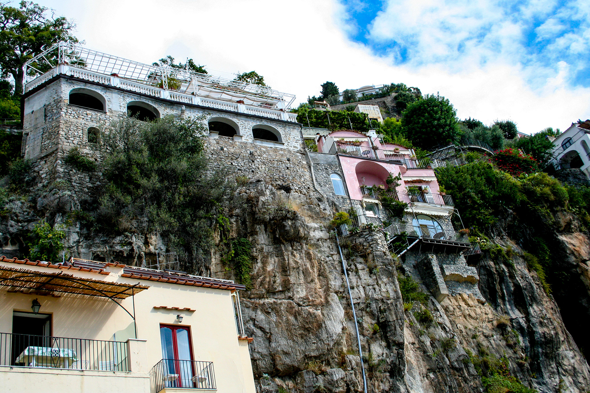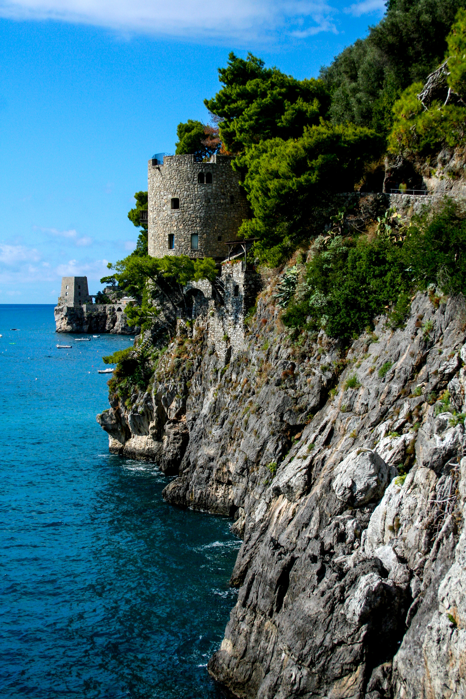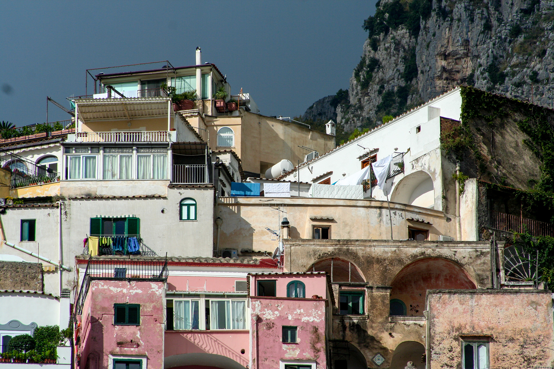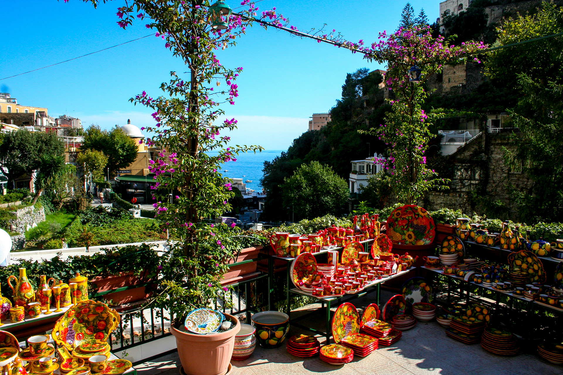 Its pastel terraces spill downward toward the Tyrrhenian, each turn revealing sunlit cafes, stone steps, and the scent of salt and citrus.